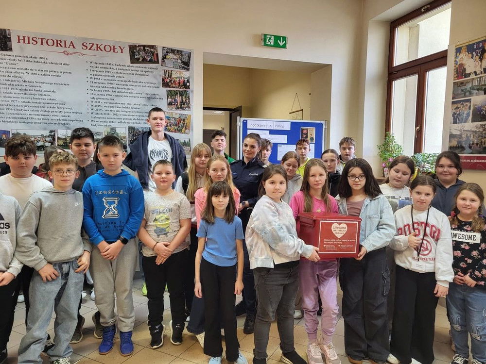 Policjantka z Zespołu ds. Profilaktyki Społecznej Nieletnich i Patologii spotkała się z uczniami Szkoły Podstawowej w Guzowie, by omówić problem hejtu i mowy nienawiści w internecie oraz konsekwencje prawne niewłaściwych zachowań w sieci. Spotkanie miało charakter informacyjno-edukacyjny i cieszyło się dużym zainteresowaniem uczestników.